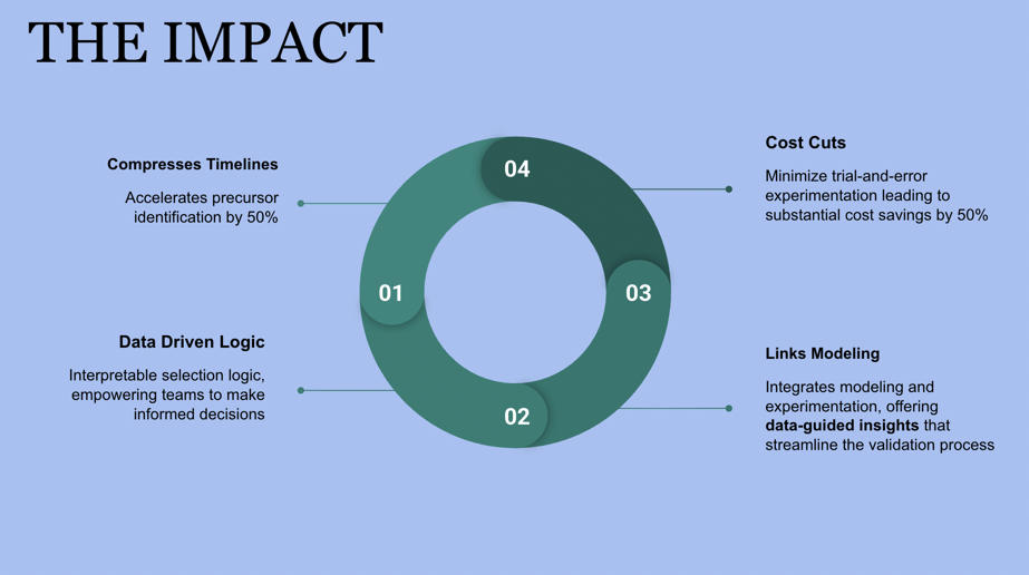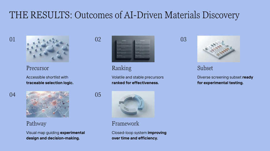This approach allowed the client to transition from conceptual materials targets to experimentally actionable precursor screening while substantially reducing early-stage discovery time and risk.