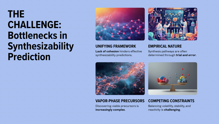 Advanced microelectronic devices require continuous innovation in materials and deposition processes to sustain performance scaling. Predicting synthesizability remains the primary bottleneck to accelerate the transition from theoretical materials discovery to practical fabrication. Unlike the discovery phase, there is no unifying theoretical or experimental framework that reliably predicts whether a material can be synthesized or provides a viable fabrication recipe. As a result, identifying synthesis pathways and processing conditions still relies heavily on empirical iteration, forming a fundamental barrier to rapid commercialization.